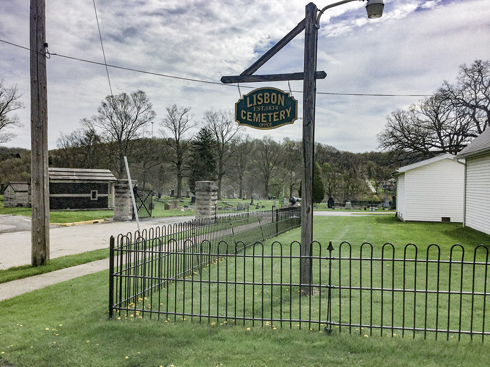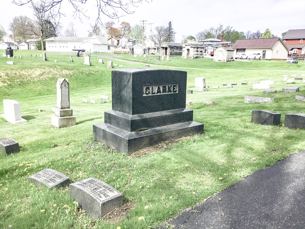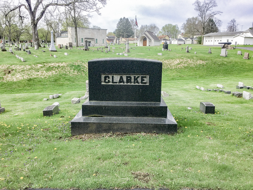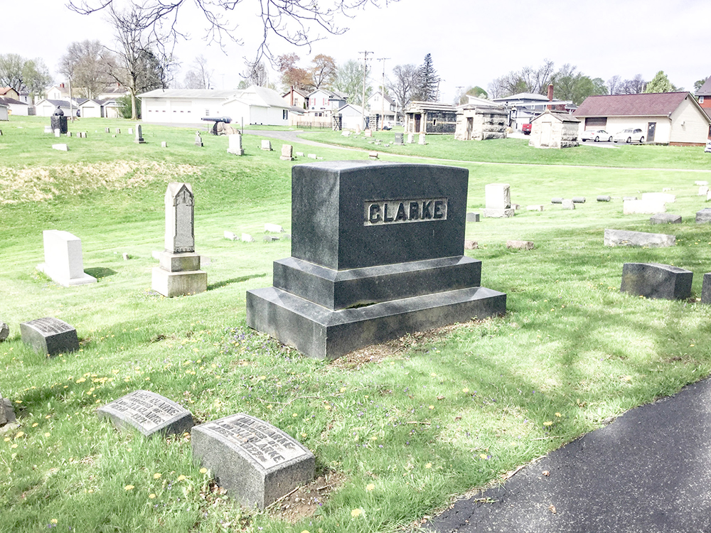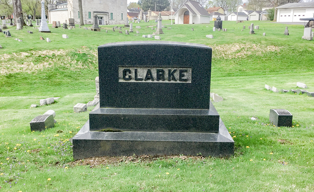 Having traveled to the grave of Mott Waite the day before, I was still very much in "graveyard mode," so I went the next day to the village of Lisbon OH near the Pennsylvania border. Just so happens Clarke's grave is right by the entrance.