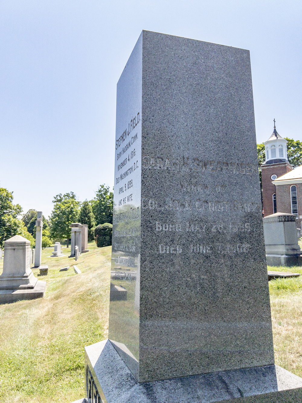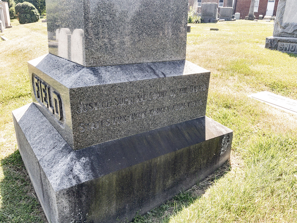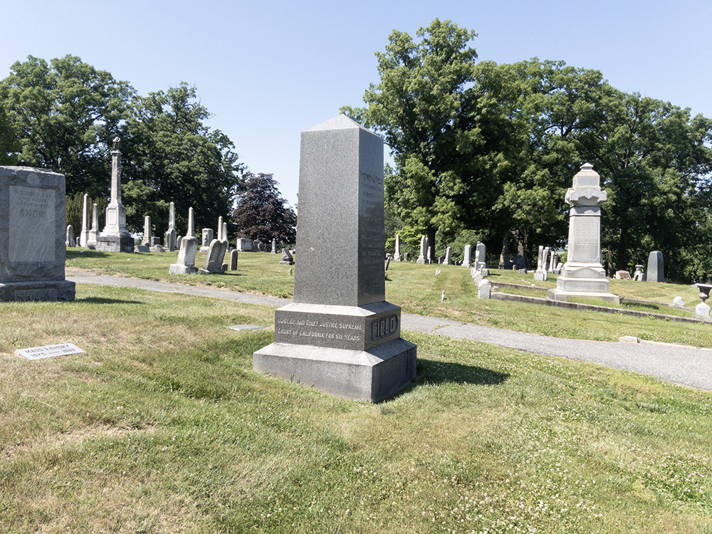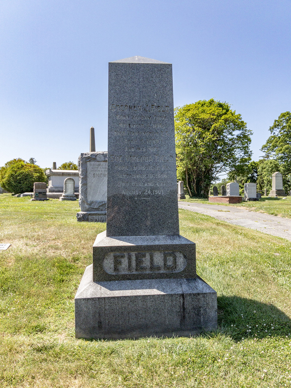 Justice Field's stone was fairly easy to find - make for the main chapel (St. Paul's Episcopal Church) and look to the right. What I missed though was that I walked right past Justice Stone's stone to get there.
