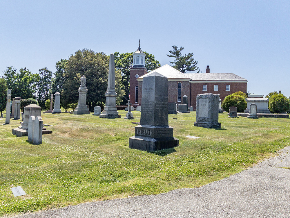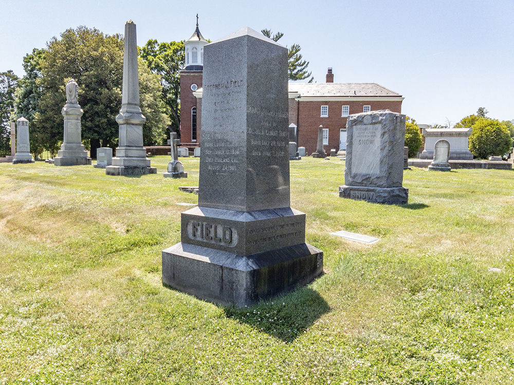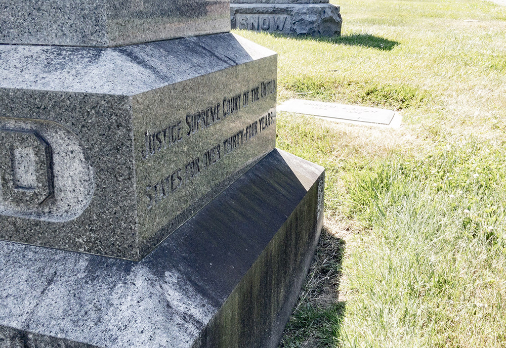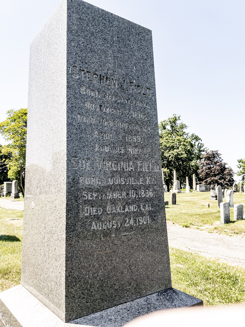 Justice Field's stone was fairly easy to find - make for the main chapel (St. Paul's Episcopal Church) and look to the right. What I missed though was that I walked right past Justice Stone's stone to get there.