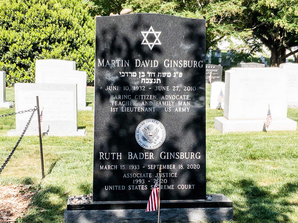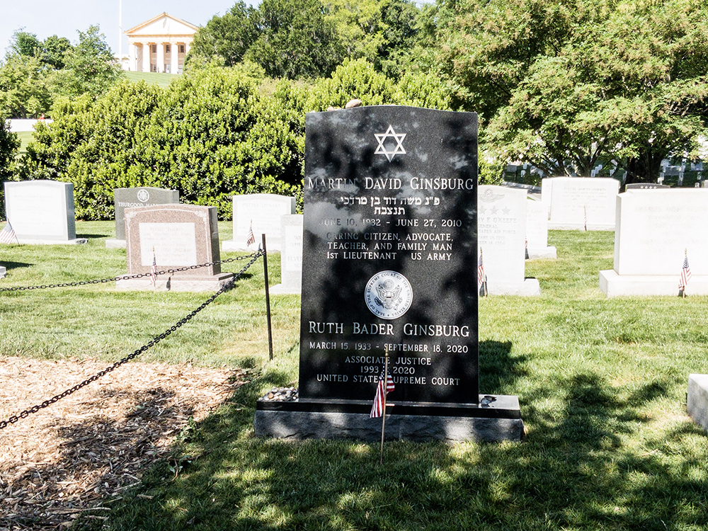 The graves of Ruth Bader Ginsburg, Warren Burger, Thurgood Marshall, Potter Stewart, John Paul Stevens, William Brennan, and Harry Blackmun are all located together in a spot very near the main entrance. And unfortunately, the area is chained off to keep folks on the paved path. Upshot was that it was hard to get the photos in the manner that I typically like to take them.