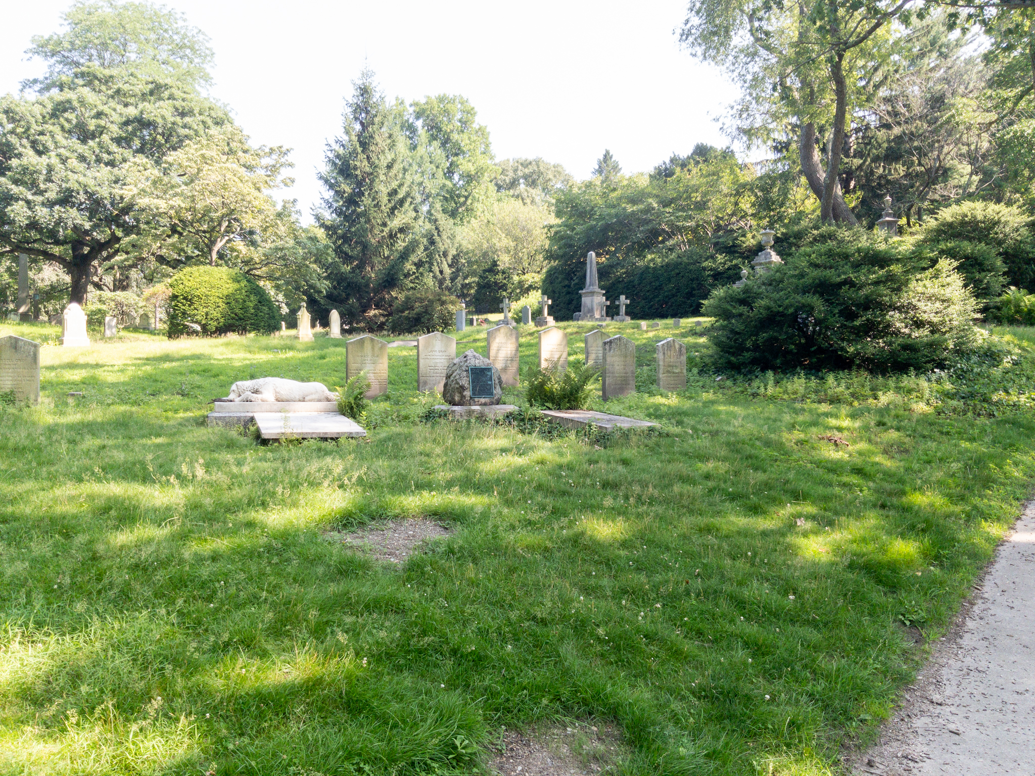Gray's grave, as well the graves of his family, can be found on a slope off the left of the main road.
