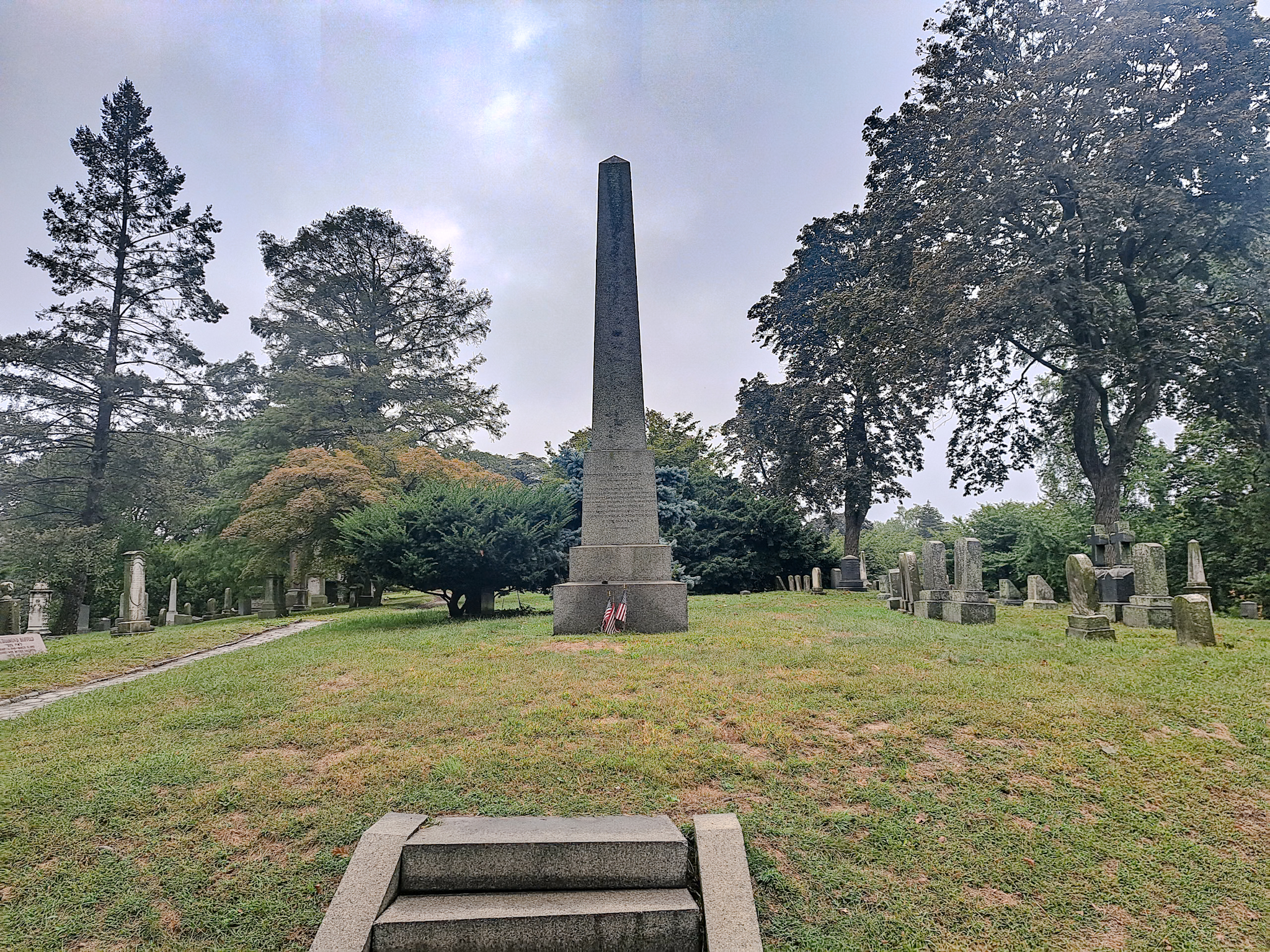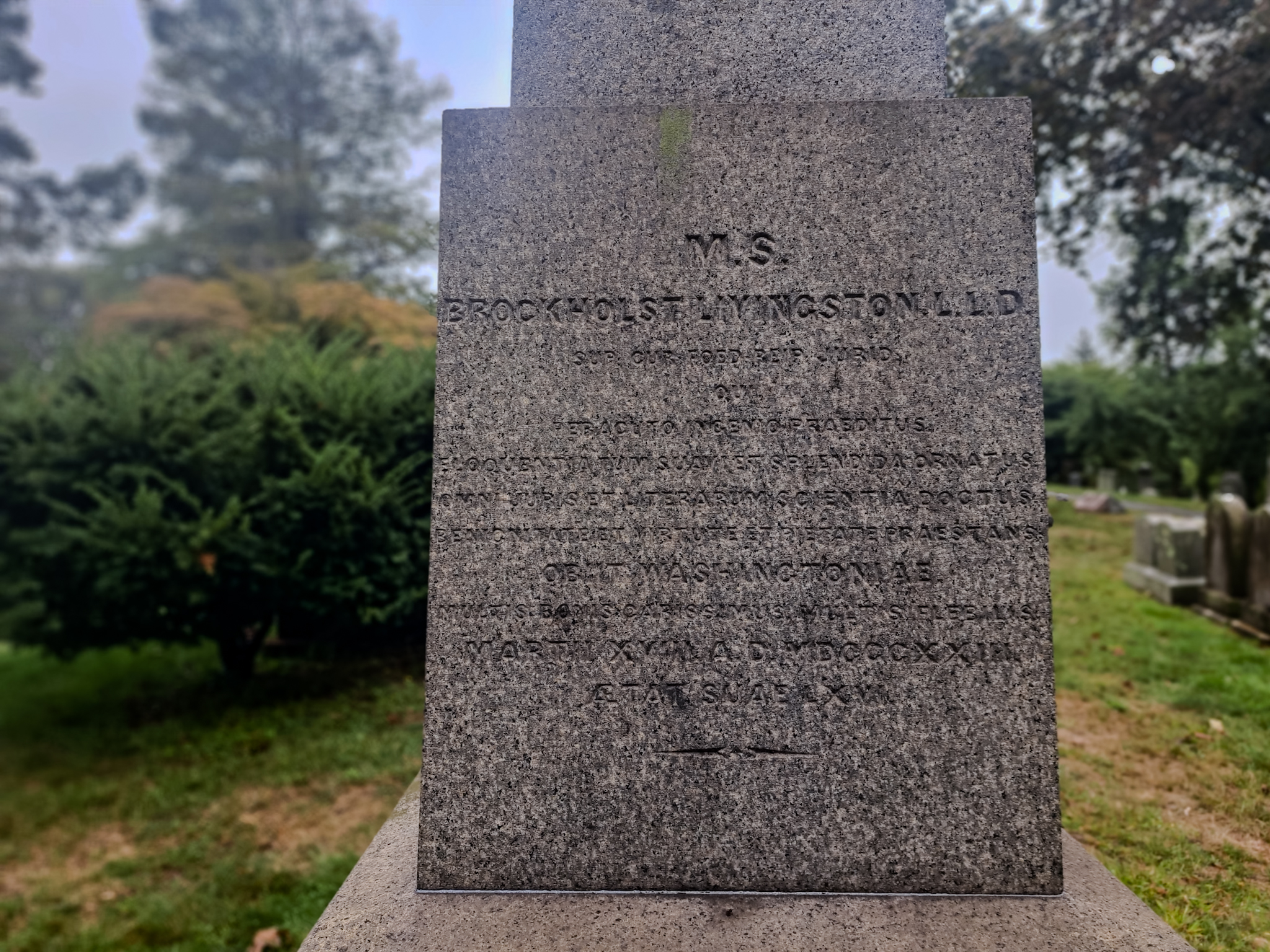 Got to Livingston and nabbed a number of photos. I believe I get a raindrop to the left of the lens, making them kind of blurry. And I'm annoyed with the quality of my 360 photo -grainy in the important parts. As I was shooting, a gentleman walked past and offered to take my photo with the grave there. So sweet. But I declined.