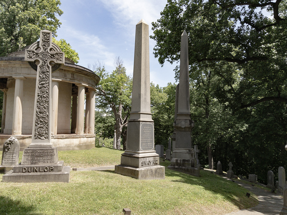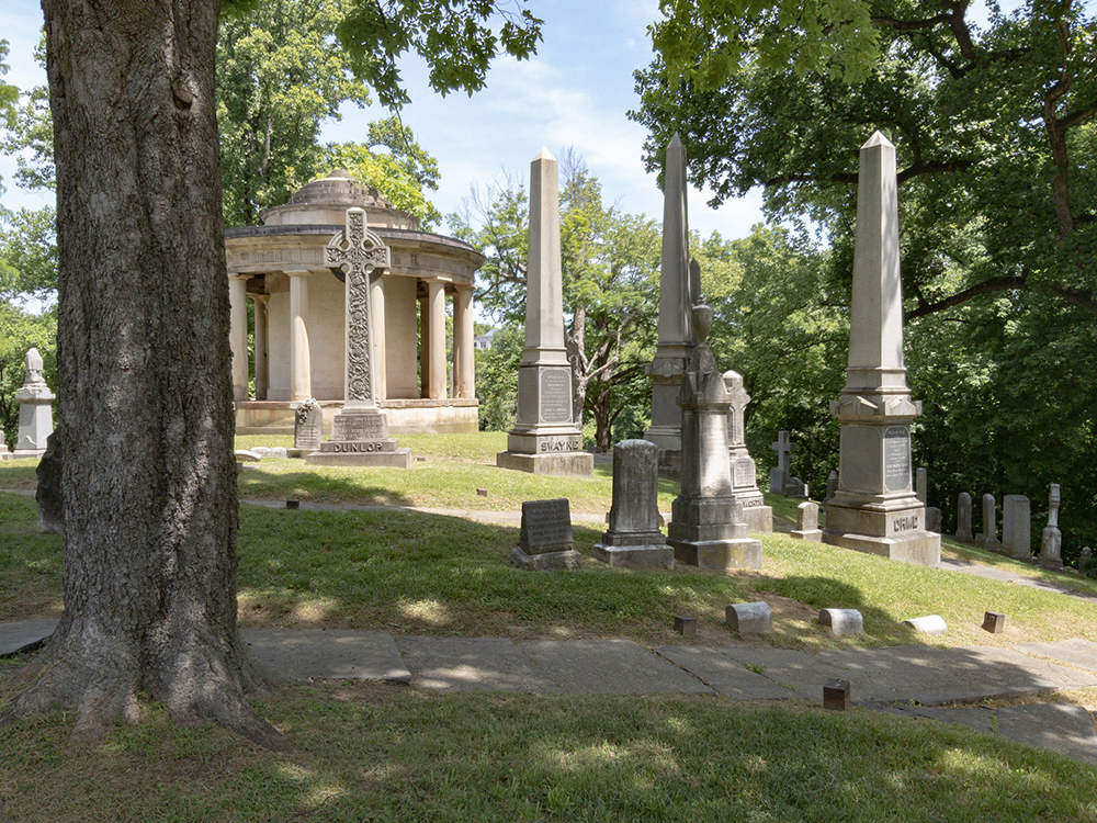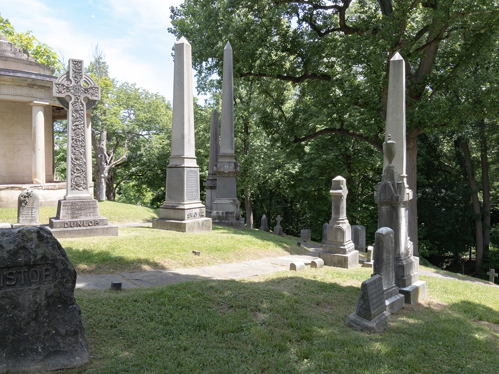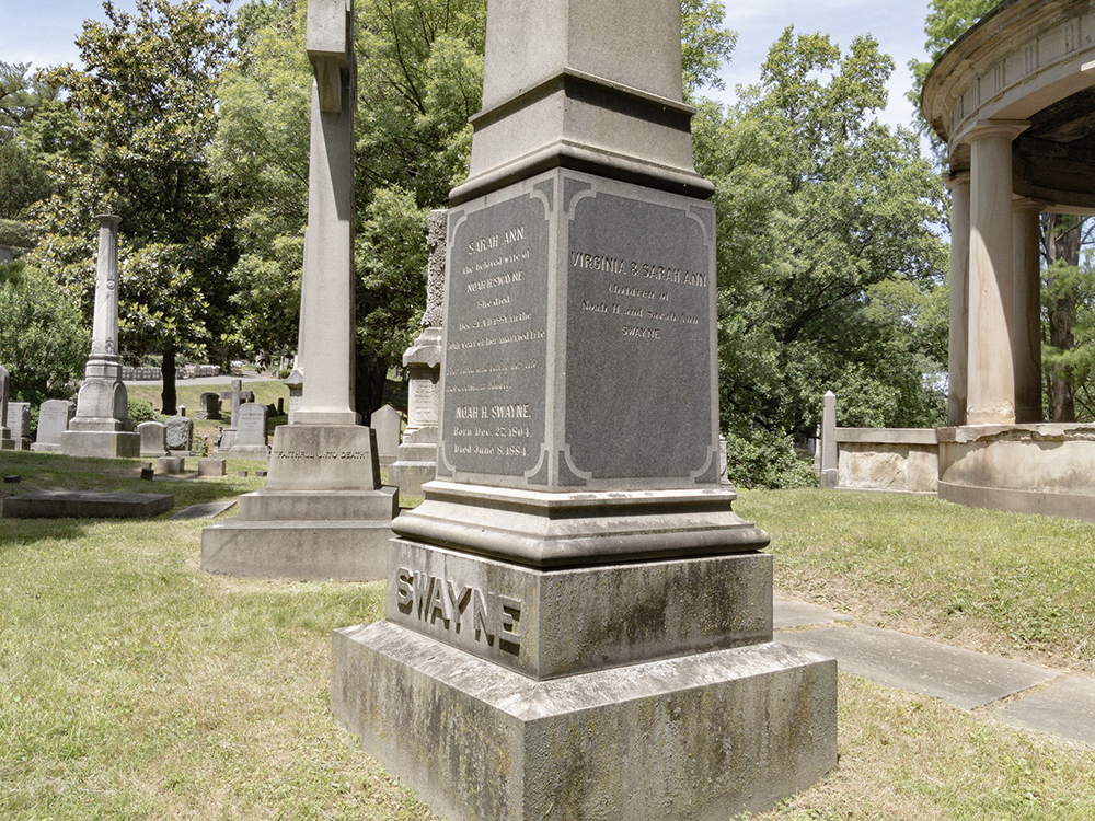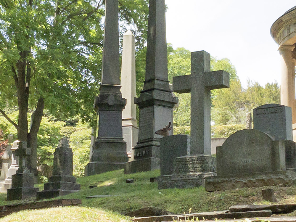 Swayne is located at the extreme east end of the cemetery on the east end of the ring around the rotunda. And when I got there, I found a bevy of deer. Handsome fellas too.