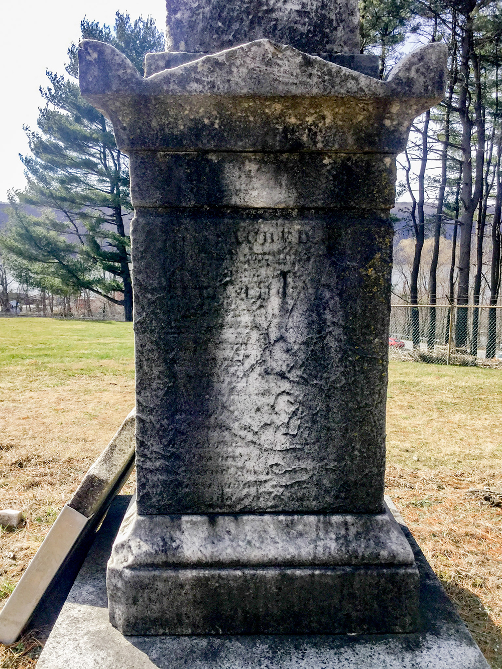 Poughkeepsie was the last stop on my trip and I was worried about losing the sun. Which was a well-founded fear, as Thompson's grave was nearly impossible to find. He is buried in a part of the cemetery that doesn't conform to the same naming convention as the rest. It wasn't immediately clear where this was located. To make matters worse, the stone itself is weathered beyond legibility.