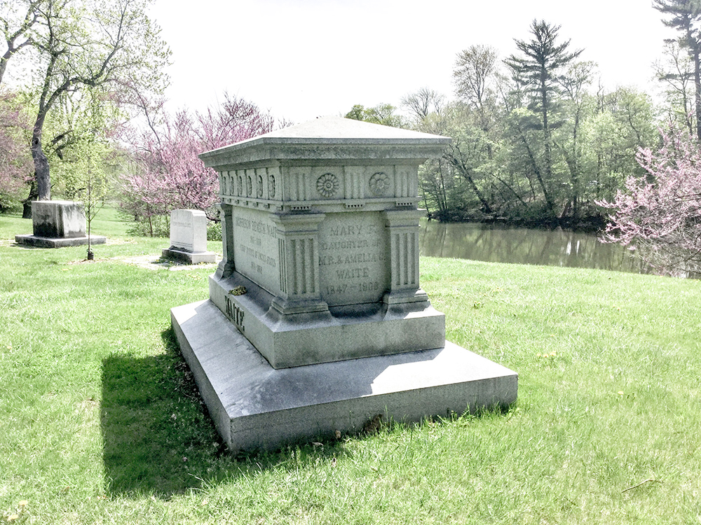 My memory fails me a little from this time, but during this period I was chronically low on funds and one way I was able to care for my daughter (of whom I shared custody with her mother) was to Go on an Adventure. Mott Waite is buried in Toledo, so a trip to his grave from Cuyahoga Falls (where I was living at the time) was a fairly straight shot on the Ohio Turnpike. It was a good day's adventure with m'girl!
